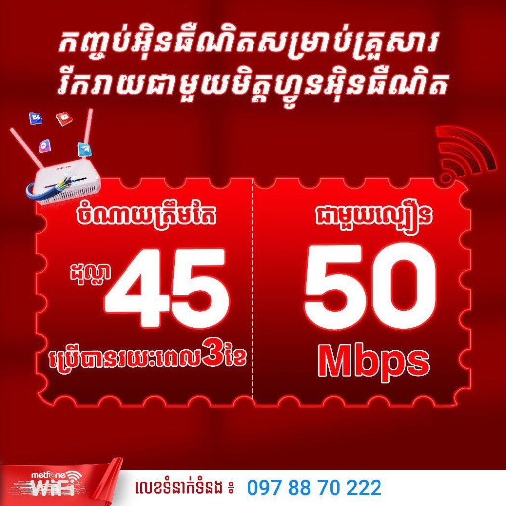 Metfone WiFi. Enhance speed to elevate your experience Gamers, streamers, and families rejoice! service. Hot Deals. 85Mbps. $25. Pay 12+ months and get 3month.